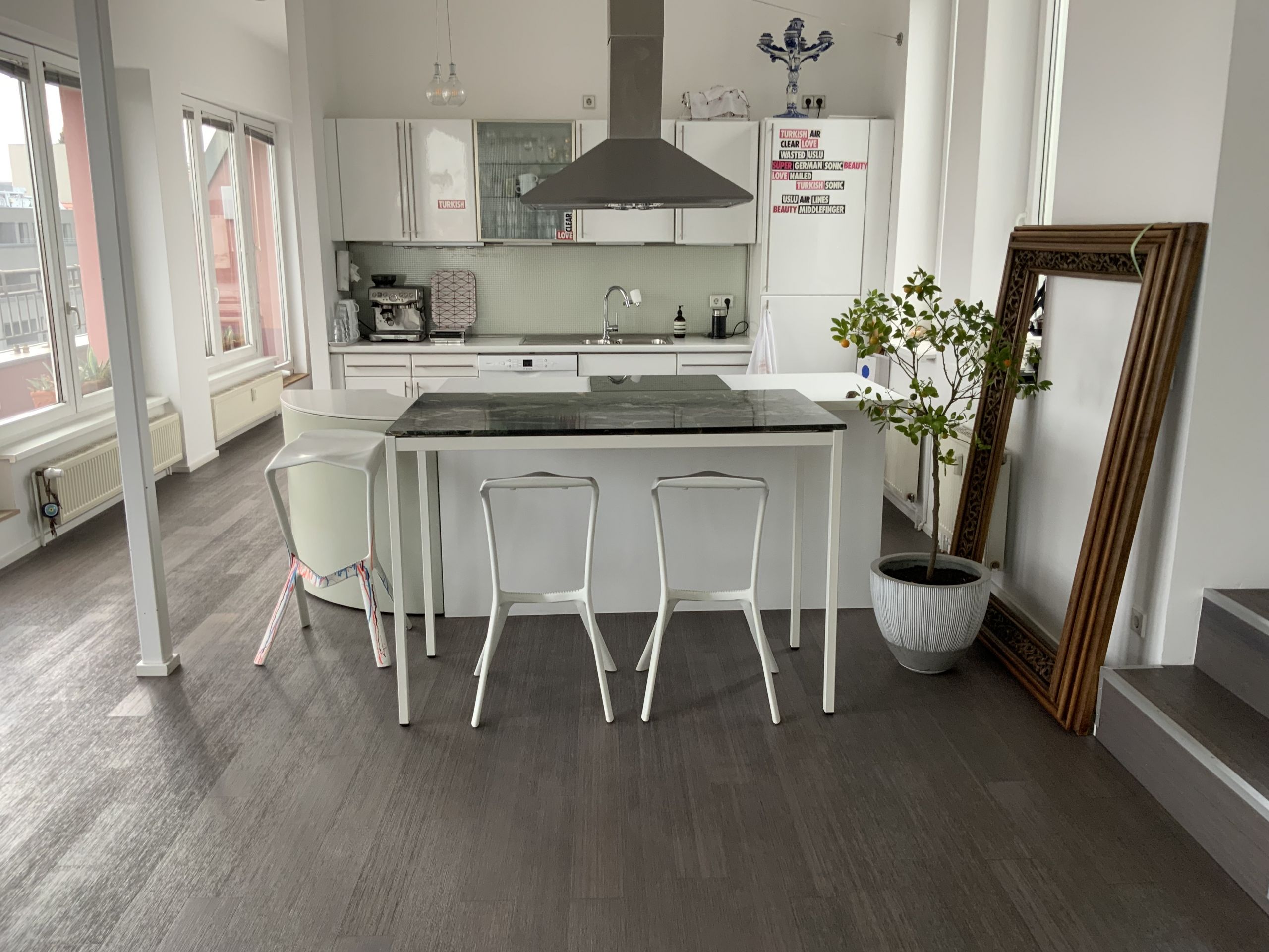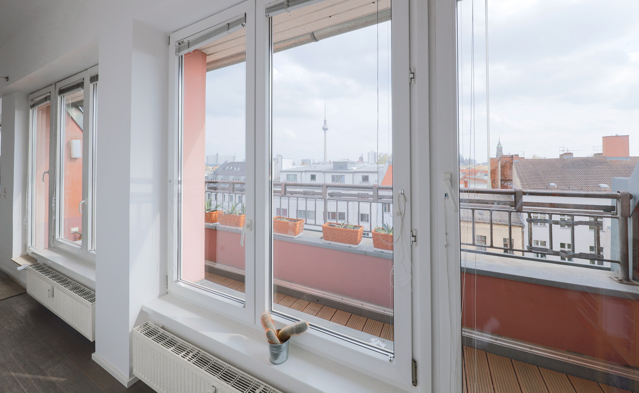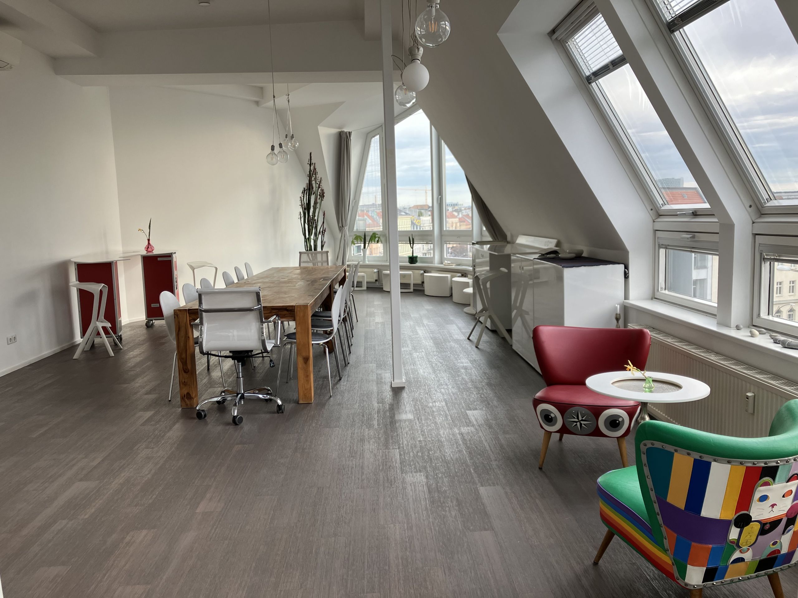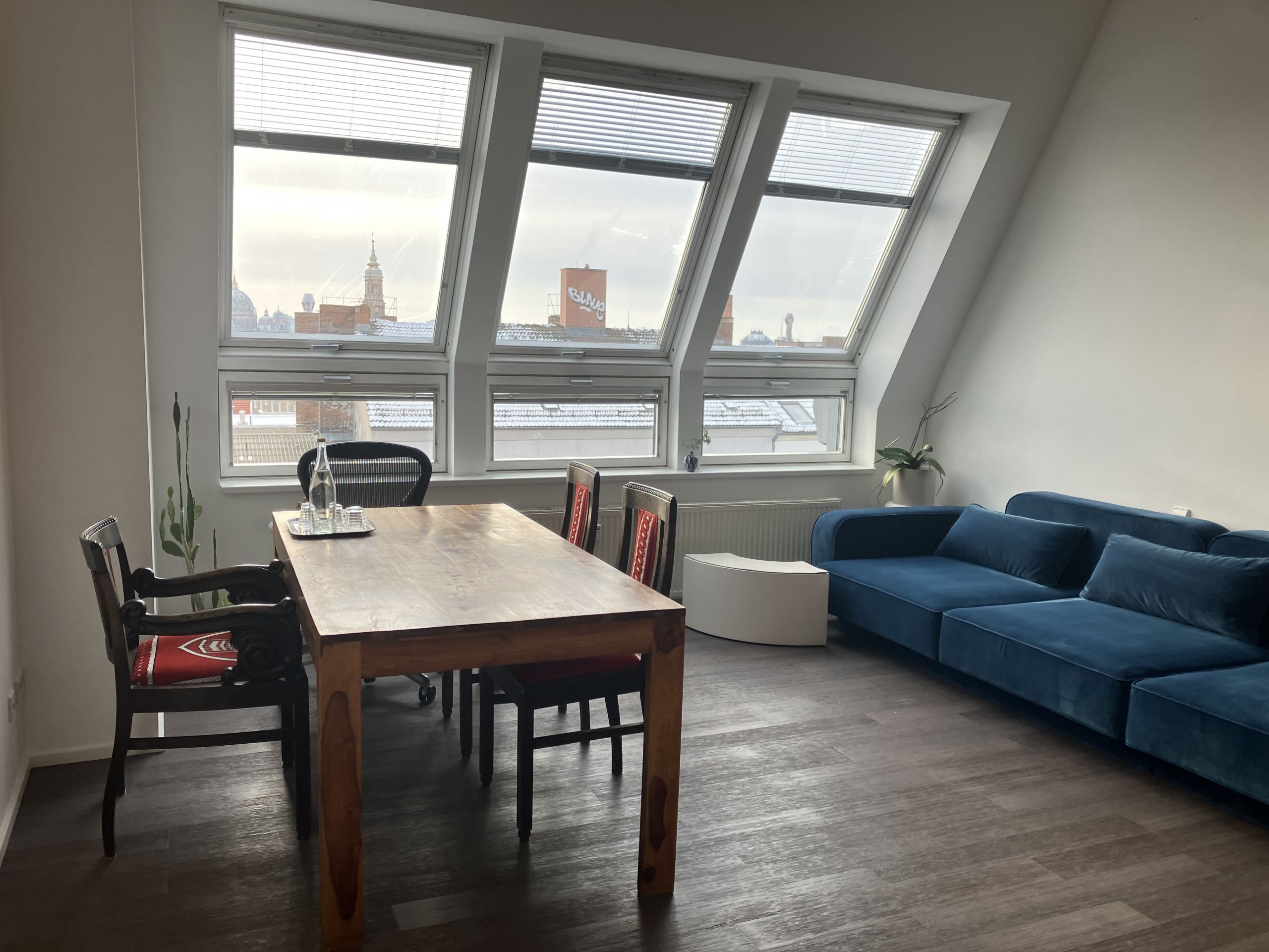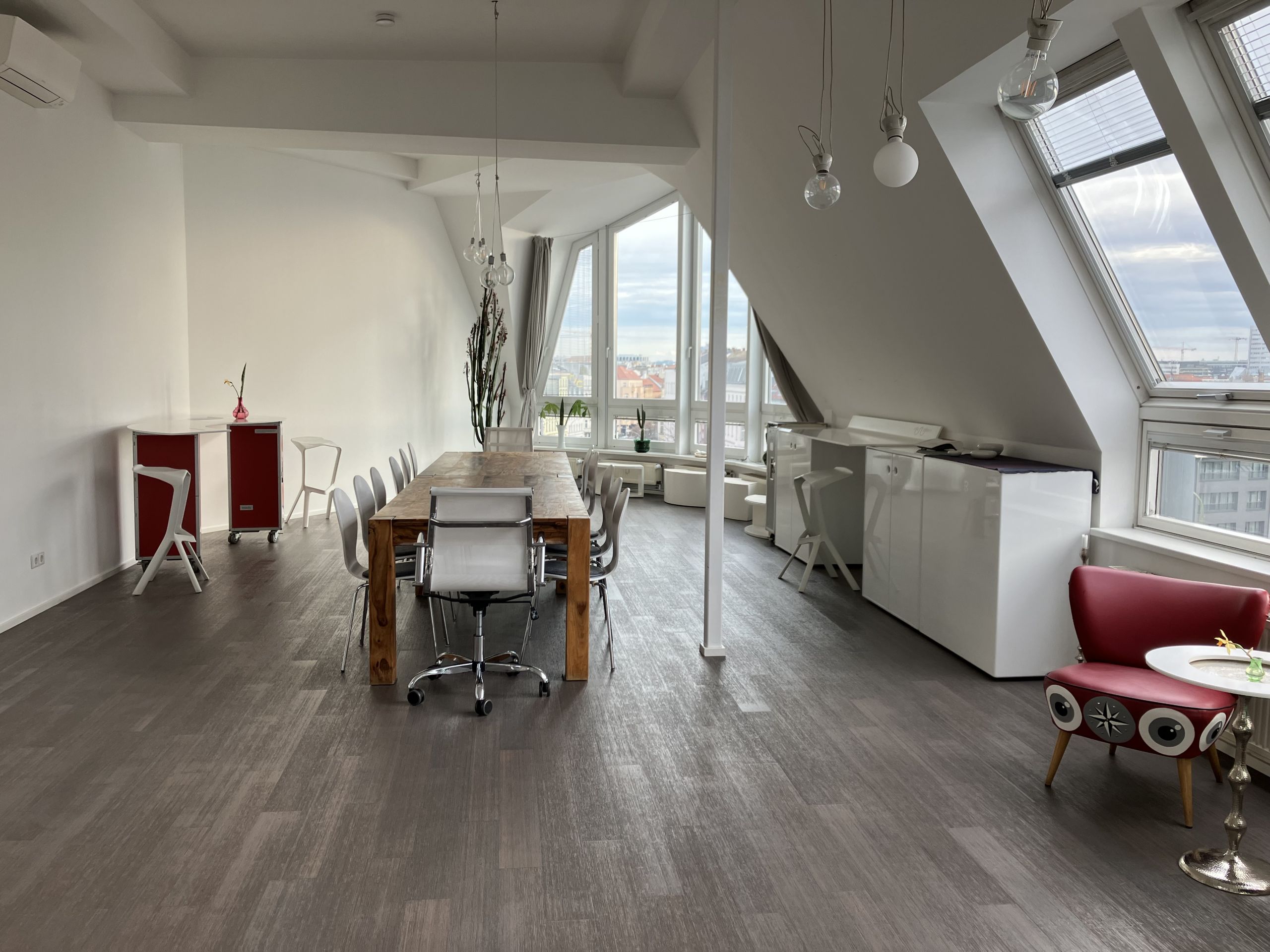 Discover USLU TOWER: Your premier venue in Berlin Mitte. This exclusive airy penthouse loft at Rosenthaler Platz offers a modern and unique setting for workshops, meetings, and unforgettable events with an amazing skyline view, including the iconic TV tower.